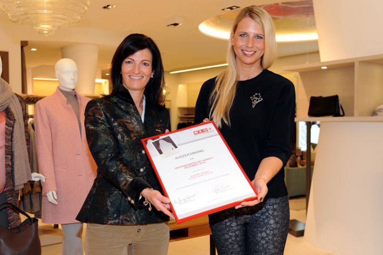 Angelika Schauer wurde 2016 zur Unternehmerin des Monats November gewählt. Diese Auszeichnung wurde Ihr von Margit Angerlehner, Landesvorsitzende von Frau in der Wirtschaft, verliehen.